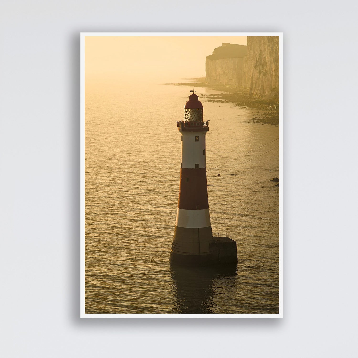Perched on the edge of the South Downs in England, Beachy Head Lighthouse has withstood over a century of wars and weather. Set against the white chalk cliffs, it shines in the golden sun—ready to guide ships safely through the night.
