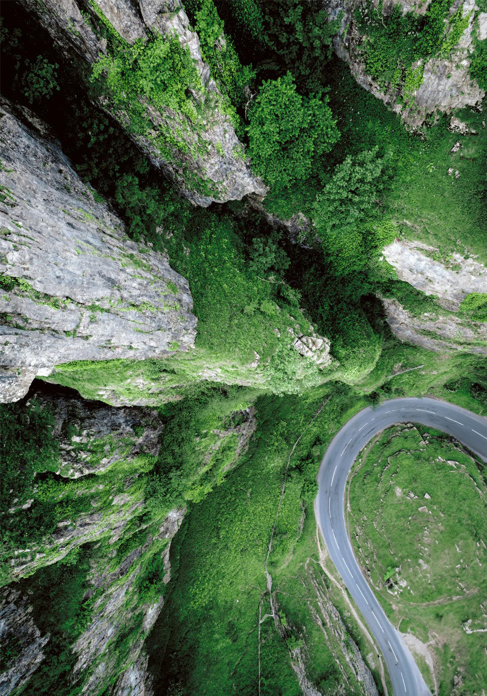 Captured from high above Cheddar Gorge in Somerset, England, this dramatic angle reveals how the road appears to be carved into the landscape. It exposes the gorge’s jagged edges and shows how unique this small part of the English country is.